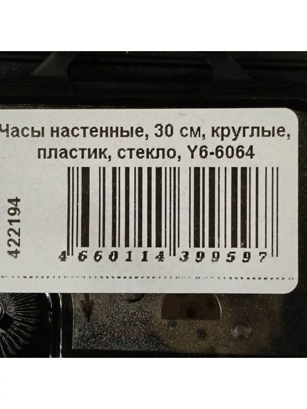 Часы настенные, 30 см, круглые, пластик, стекло, Y6-6064/A250005