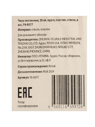 Часы настенные, 30 см, круглые, пластик, стекло, в ассортименте, Y6-6077/A250014