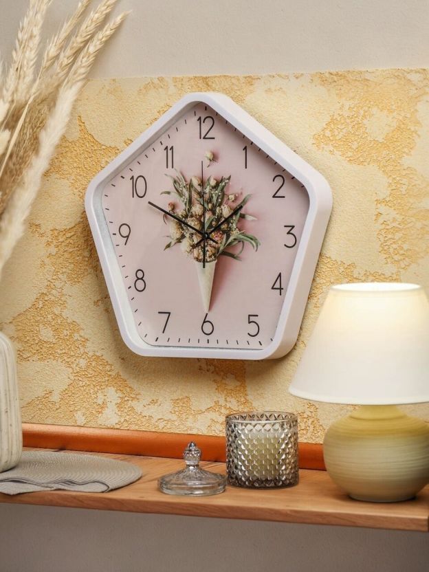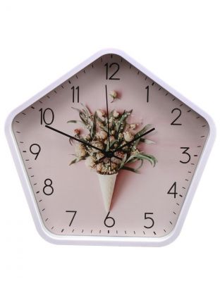 Часы настенные, 34х33х4 см, пятиугольные, пластик, розовые, Букет, Y4-5199