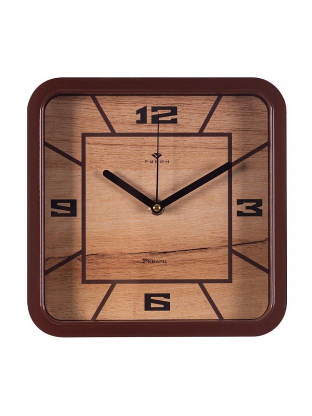 Часы настенные, кварцевые, 22х22 см, корпус коричневый, квадратные, Рубин, Классика, 2223-011