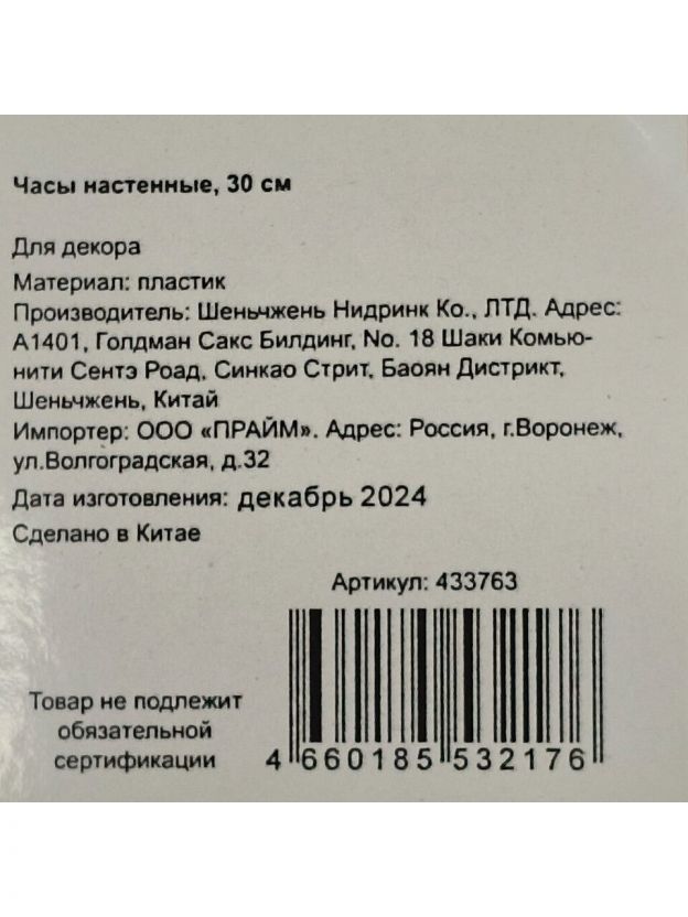 Часы настенные, кварцевые, 30 см, тихий ход, круглые, полимер, Y4-6872