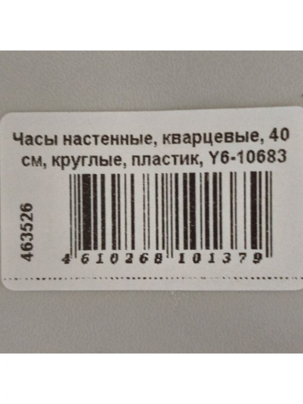 Часы настенные, кварцевые, 40 см, круглые, пластик, Y6-10683/A250048