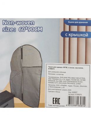 Чехол для одежды 60х90 см, без кармана, с окном, Серая волна, A190073