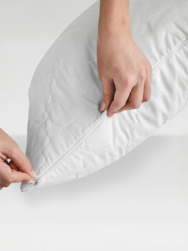 Наволочка оснащена утеплителем, выполненным из полиэстера, и прошита по периметру "молнией" с замочком, подушка удобно помещается внутрь и извлекается при необходимости. Стирать изделие можно в стиральной машине.