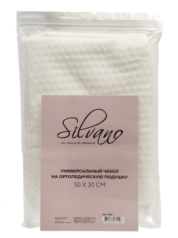 Чехол на подушку Silvano, 100% полиэстер, 50х30 см, ортопедический, TX001