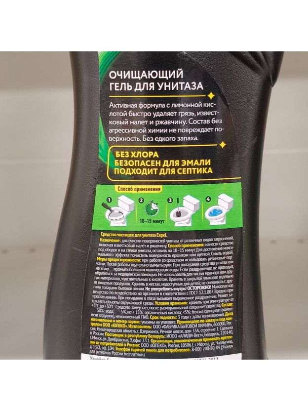 Чистящее средство для унитаза Expel - это мощный продукт, который эффективно удаляет грязь, известковый налёт и ржавчину. Баланс эффективности и безопасности достигается за счет применения лимонной и щавелевой кислоты. Благодаря своим свойствам эти природные кислоты отлично очищают загрязнения и абсолютно безопасны для эмали. Экстра густой состав медленнее стекает и лучше распределяется по стенкам унитаза, что обеспечивает более длительное взаимодействие с поверхностью. Характеристики: Тип: средство для унитаза. Особенности: против известкового налета и ржавчины. Форма выпуска: гель. Объем: 700 мл. Преимущества: Устраняет известковый налет и ржавчину. Не повреждает эмаль унитаза. Не содержит агрессивных кислот и хлора.