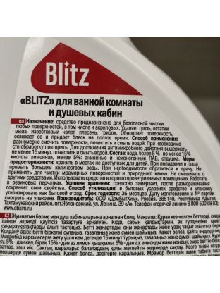 Средство для ванной Blitz предназначено для деликатной чистки и обновления акриловых ванн, душевых кабин и бассейнов.