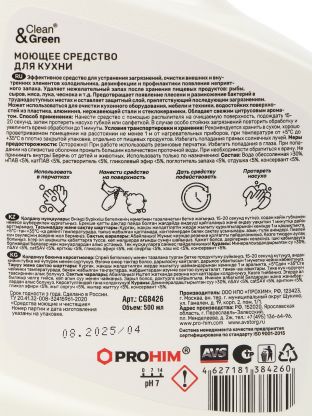 Флакон объёмом 500 мл рассчитан на 10-15 уборок, экономично расходуется, сохраняет свойства при хранении до 24 месяцев.