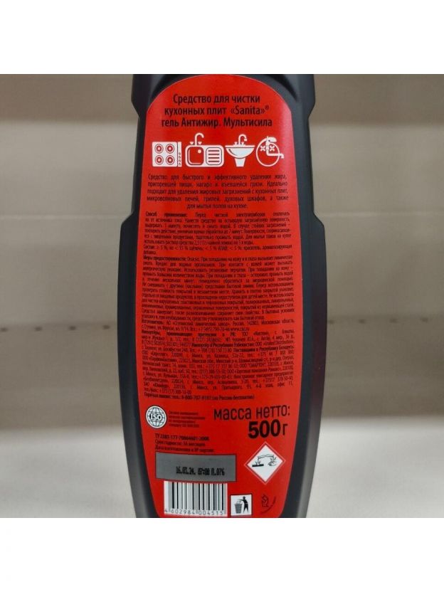 Чистящее средство для кухни, Sanita, Антижир Мультисила, гель, 500 мл