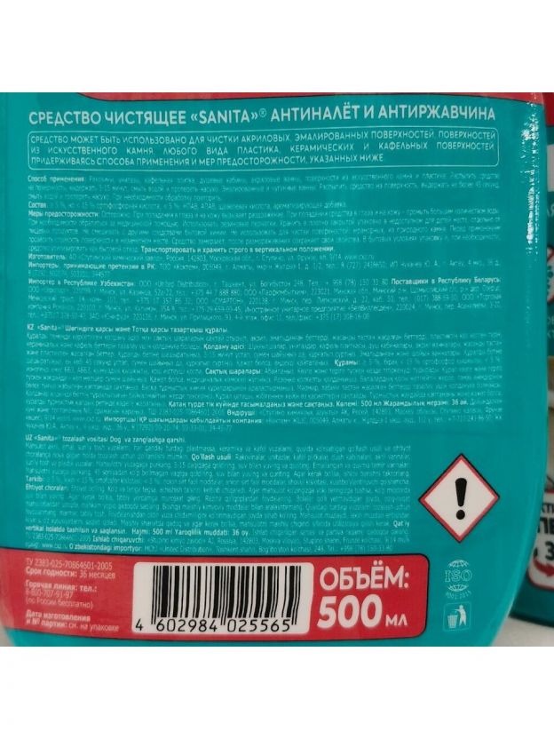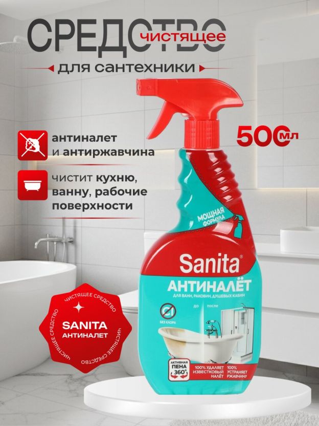 Чистящее средство для сантехники, Sanita, Антиналет и Антиржавчина, спрей, 500 мл