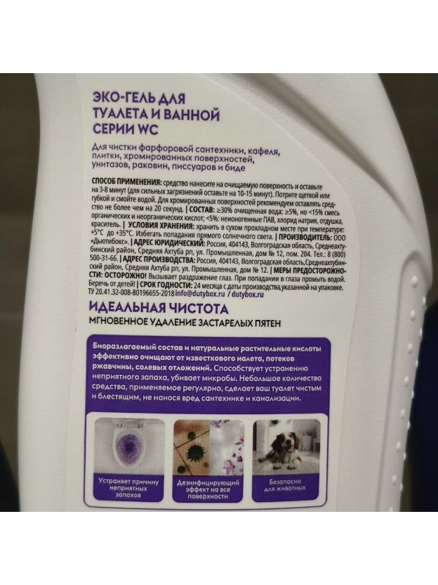 Откройте для себя эффективное решение для чистоты и свежести в ванной комнате! Чистящее средство для туалета Dutybox Эко - это инновационный гель, который обеспечит безупречную чистоту и гигиену. С объемом 750 мл, этот продукт станет надежным помощником в уходе за туалетной комнатой.