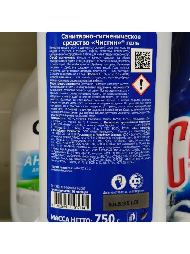Чистящее средство санитарно-гигиеническое, Чистин, гель, 750 г