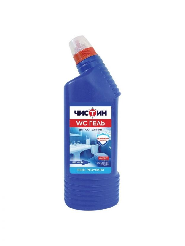 Чистящее средство Чистин предназначено для чистки и удаления загрязнений: ржавчины, мыльных осадков, подтеков с унитаза, кафеля, фаянсовых поверхностей, сантехнического оборудования, а также для мытья твердых поверхностей. Способ применения: Нанести средство под ободок и распределить внутри унитаза, выдержать более 10 минут, почистить и смыть водой. При необходимости обработку повторить. Фаянсовые раковины обработать средством и смыть водой. Полы, сантехническую арматуру, пластмассу мыть раствором 2-3 колпачка средства на 1 литр воды.