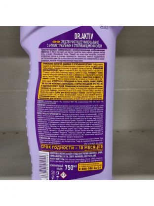 Представляем универсальное чистящее средство Dr.Aktiv в формате геля, объемом 750 мл. Это идеальный выбор для поддержания чистоты в доме. Благодаря своей универсальности, средство подходит для различных поверхностей, обеспечивая блестящий результат без лишних усилий.