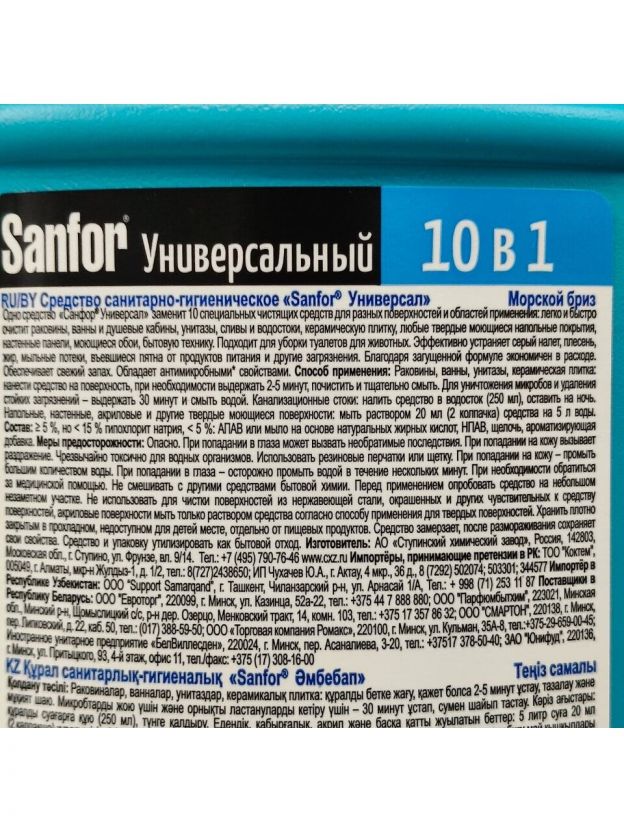 Sanfor — одного из крупнейших производителей бытовой химии на территории Российской Федерации. Приверженность самым высоким стандартам качества, использование передовых технологий, эффективность и доступная цена по праву делают Sanfor популярным у потребителей.
