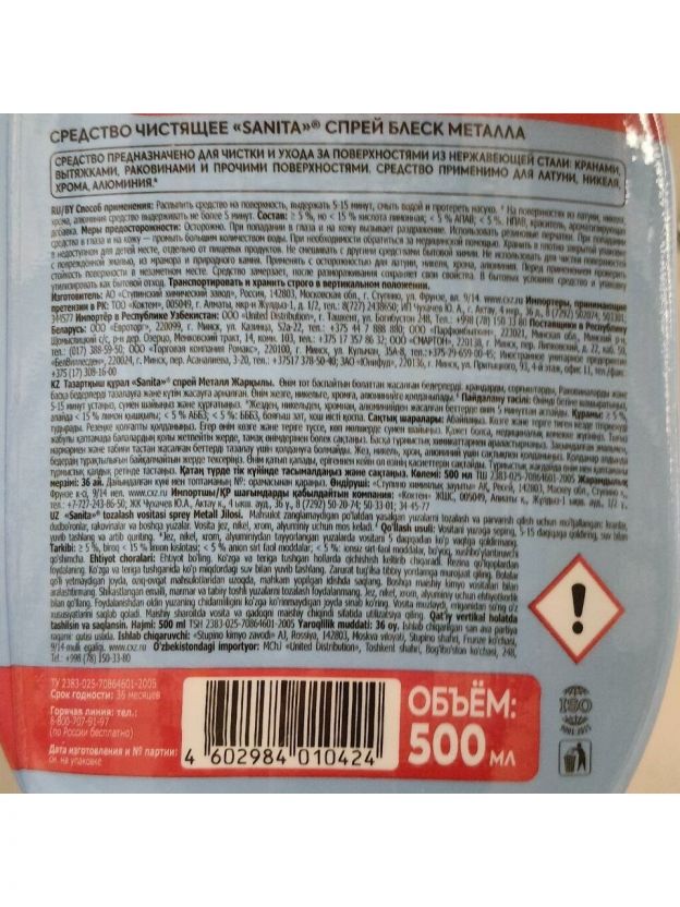 Чистящее средство универсальное, Sanita, Блеск металла, спрей, 500 мл