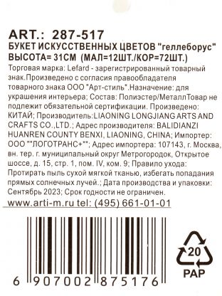 Цветочный букет искусственный Геллеборус, декоративный, 31 см, 287-517