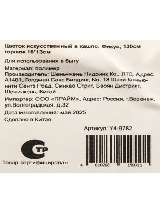 Цветок искусственный Фикус, горшок 16х13 см, 130 см, Y4-9782