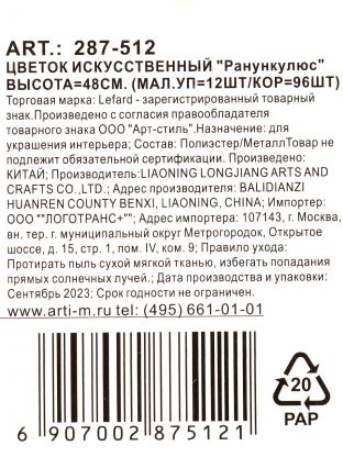 Какой материал используется в искусственном цветке Ранункулюс 48 см?