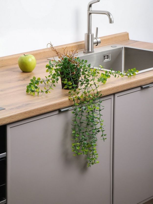 - Реалистичный внешний вид – зелёное ампельное растение выглядит как живое, но не требует полива и света