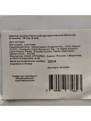 Цветок искусственный декоративный Бонсай, в кашпо, 22 см, в ассортименте, Y4-3026