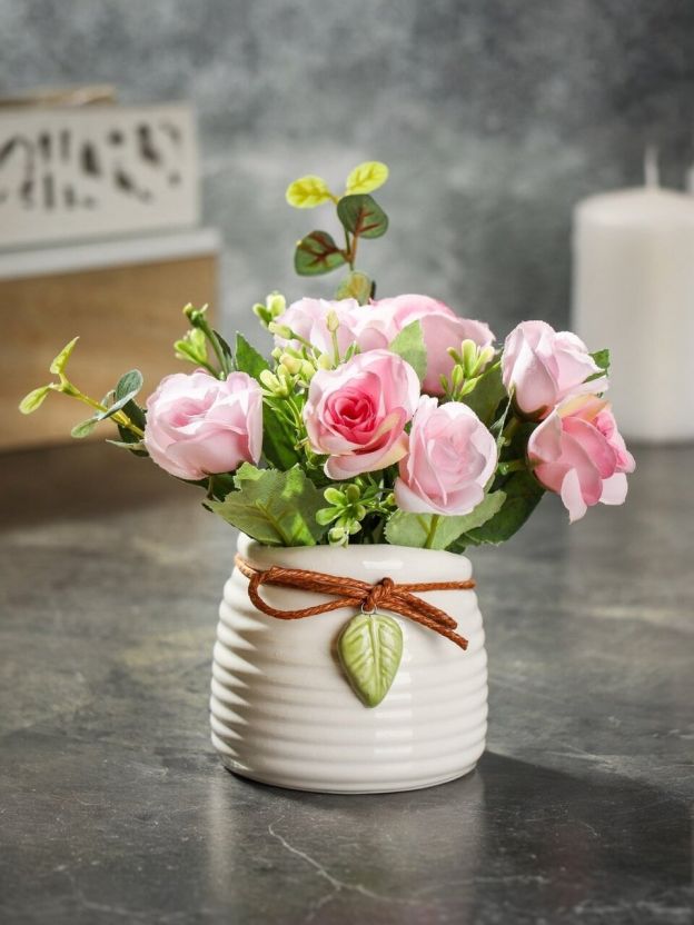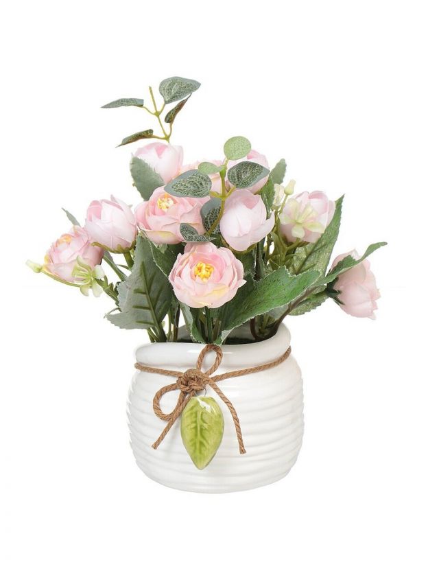 Цветок искусственный декоративный Букет роз, в кашпо, 16 см, розовый, Y6-2053