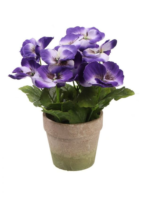 Цветок искусственный декоративный Фиалки в кашпо, 23х10 см, Y4-7933