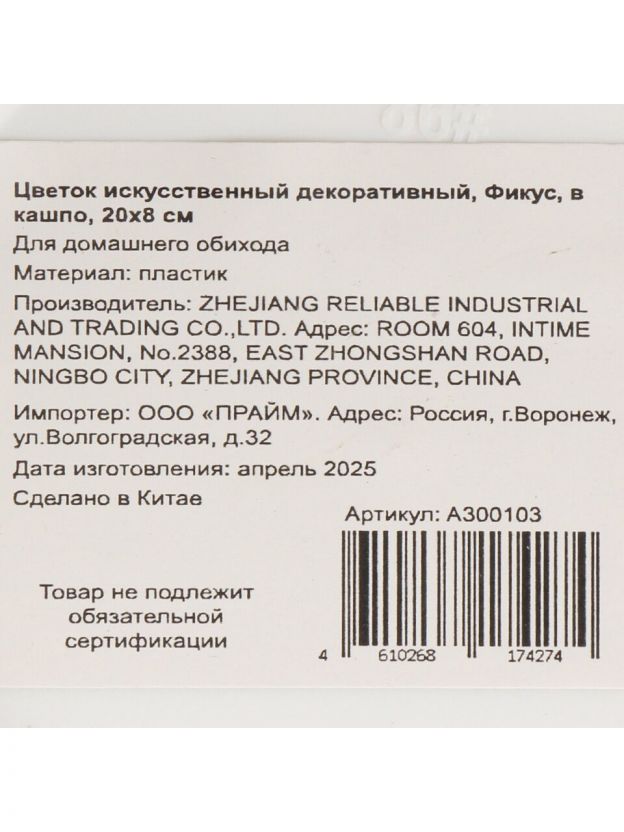 Искусственный фикус в стильном кашпо 20х8 см — идеальное решение для уюта без хлопот: свежесть зелени без полива и забот, гармония в интерьере за 1 минуту.