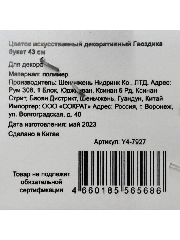 Цветок искусственный декоративный Гвоздика букет, 43 см, фуксия, Y4-7927