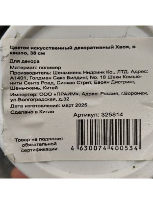 Цветок искусственный декоративный Хвоя, в кашпо, 38 см, Y6-2051