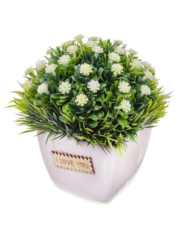Цветок искусственный декоративный Композиция белых цветов, в кашпо, в кашпо, 13 см, Y6-2062