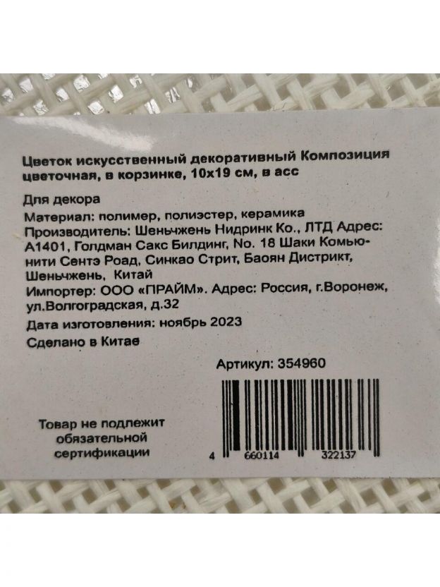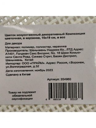 Цветок искусственный декоративный Композиция цветочная, в корзинке, 10х19 см, в ассортименте, Y4-3495