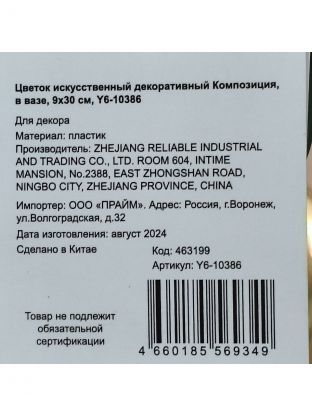 Цветок искусственный декоративный Композиция, в вазе, 9х30 см, Y6-10386/A300061