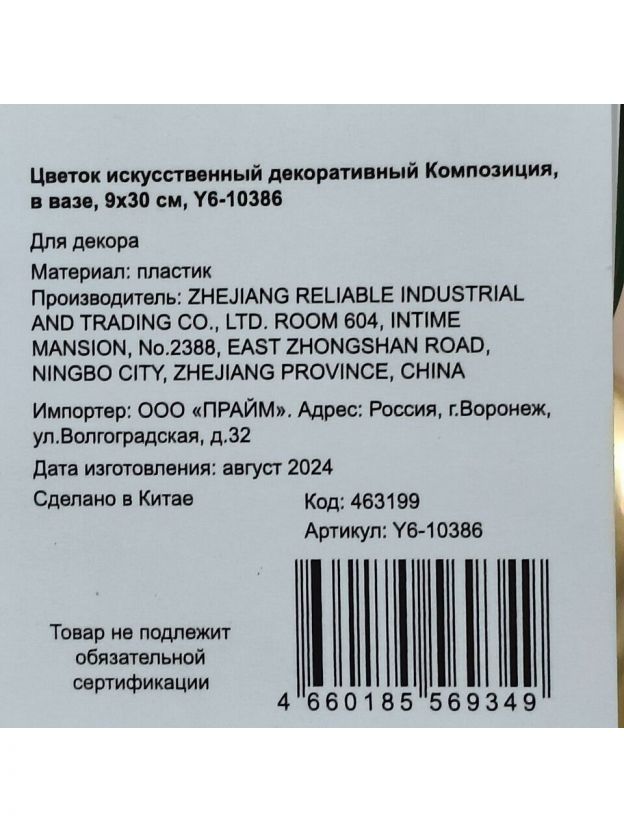 Искусственный цветок не увядает, не требует ухода и сохраняет свой первоначальный вид на протяжении длительного времени.