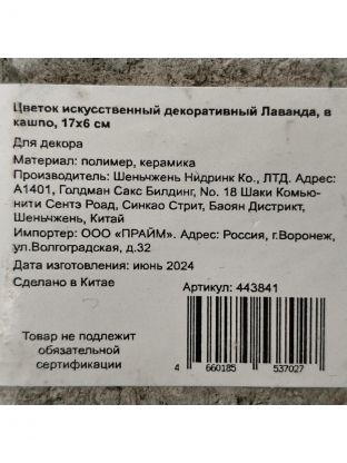 Цветок искусственный декоративный Лаванда, в кашпо, 17х6 см, сиреневый, Y4-7160