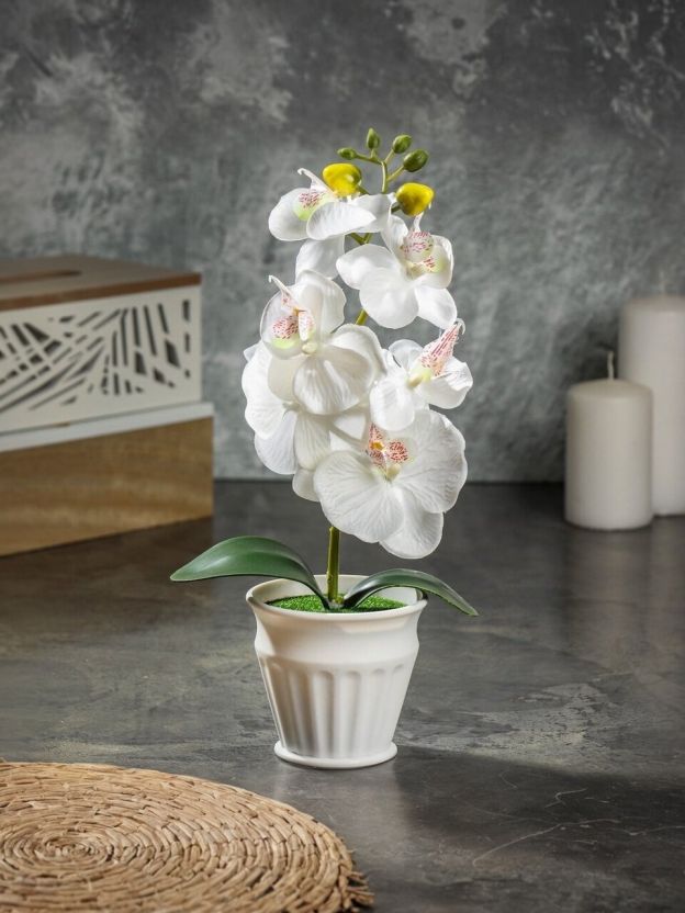 Цветок искусственный декоративный Орхидея в кашпо, 32 см, белый, Y4-7934