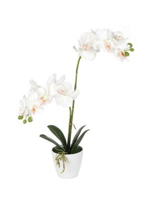 Цветок искусственный декоративный Орхидея в кашпо, 55 см, белый, Y4-7945