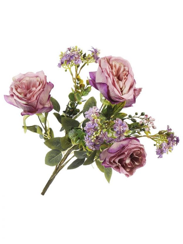 Цветок искусственный декоративный Роза букет, 44 см, розовый, Y4-7912