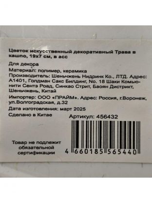 Цветок искусственный декоративный Трава в кашпо, 16х7 см, в ассортименте, Y4-7903