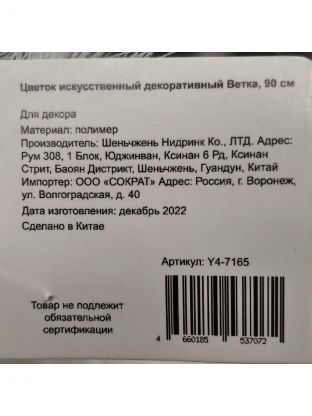 Цветок искусственный декоративный Ветвь, 85 см, зеленый, Y4-7155
