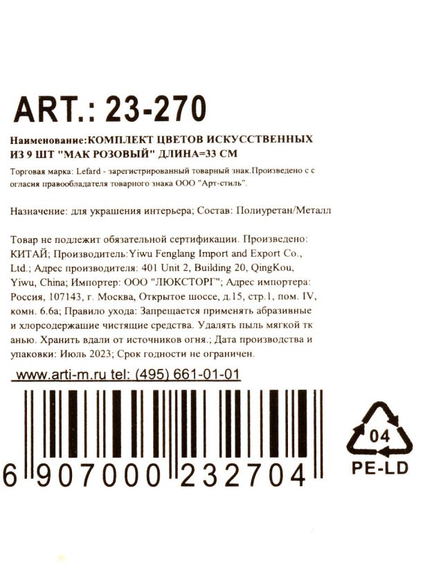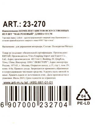 Декоративные искусственные цветы «Мак Розовый» — это идеальное решение, если вы ищете, какие цветы выбрать для украшения интерьера без хлопот. Комплект из 9 реалистичных маков длиной 33 см отлично впишется в любой стиль: от минимализма до прованса. Материал сохраняет насыщенность цвета и не требует ухода, что выгодно отличает эти цветы от живых аналогов и других искусственных букетов, склонных к выцветанию.