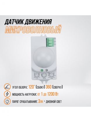 Датчик движения встраиваемый, 1200 Вт, 1-8 м, 120°, 360 °, IP20, 3+ лк, 5.8 ГГц, TDM Electric, ДДМ-01, SQ0324-0015