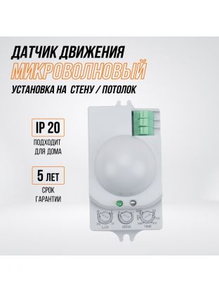 Микроволновые датчики движения работают по принципу локации СВЧ излучением на отражение. Датчики испускают высокочастотные электромагнитные волны с частотой 5,8 ГГц и получают эхо, отраженное от объектов.