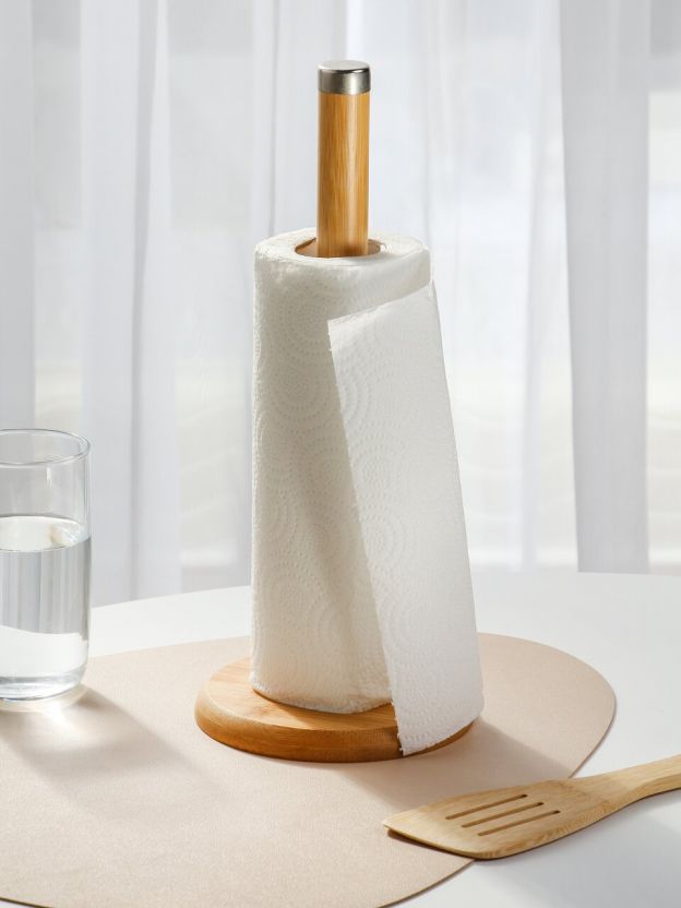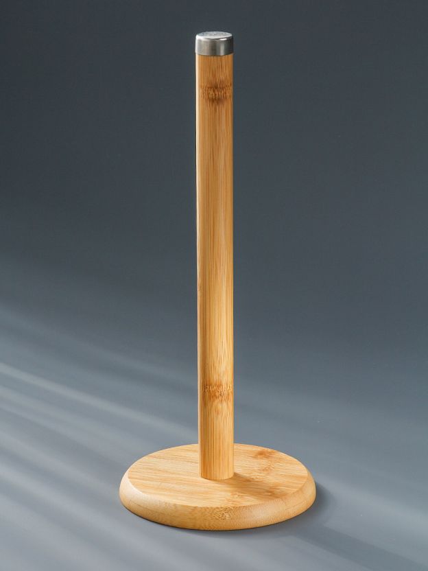 Держатель бумажных полотенец - простой и практичный аксессуар для аккуратного хранения и удобной эксплуатации рулонов с одноразовыми полотенцами. Высота изделия 33 см, диаметр основания 14 см. Изготовлен держатель из дерева. Цвет - «бамбук», поверхность матовая. Установка не требует крепежа, держатель можно свободно перемещать в зоне готовки - полотенца всегда будут под рукой. Лаконичный дизайн аксессуара прекрасно впишется в интерьер современной кухни.