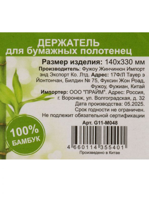 Держатель для бумажных полотенец, 140х330 мм, бамбук, G11-M048