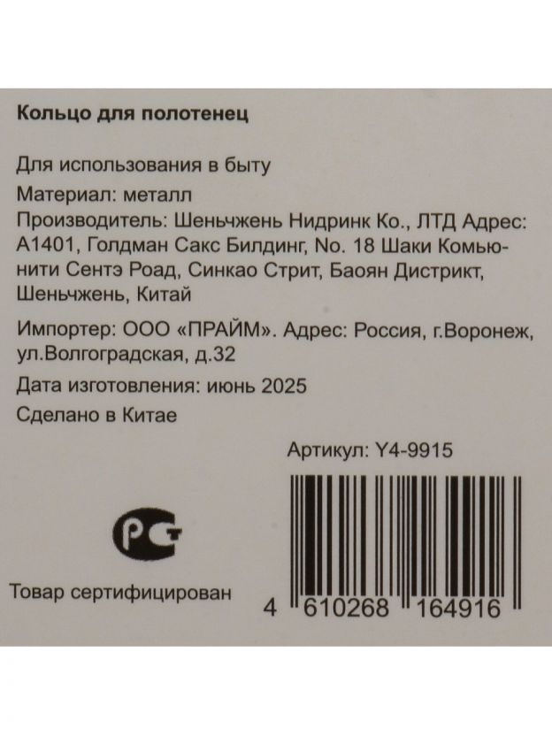 Модель Y4-9915 оснащена прочным кольцом для полотенец, выполнена из металла, цвет — черный. Подходит для стандартных полотенец, не занимает много места и легко вписывается в любой интерьер.