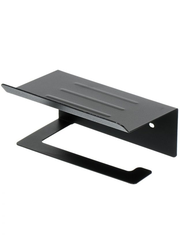 Держатель для туалетной бумаги, с полкой, 17х12х7.5 см, металл, черный, A340122