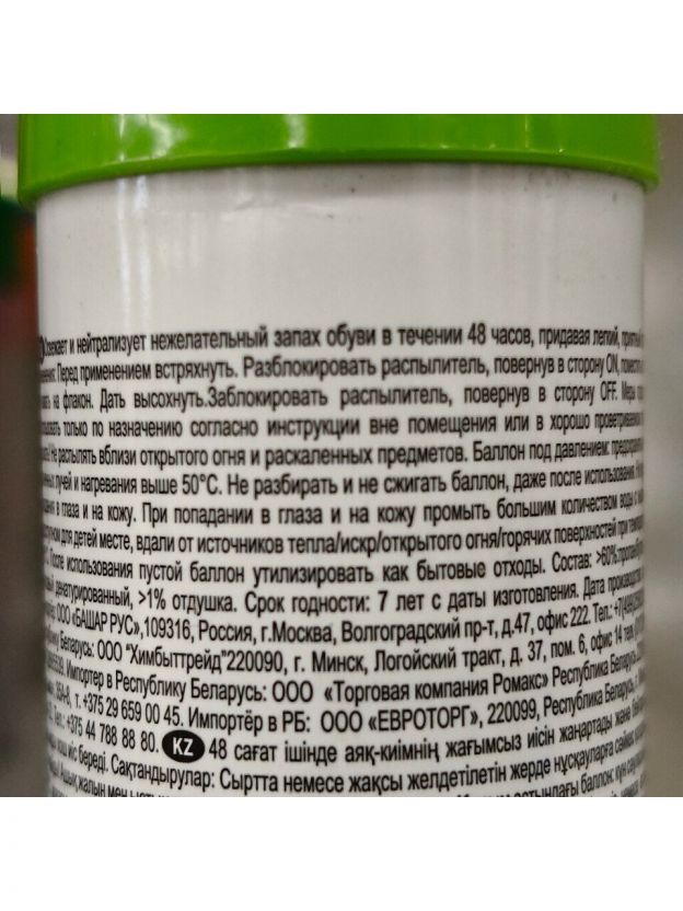 Дезодорант для обуви эффективно устраняет неприятный запах, поглощая бактерии, которые являются его причинами. Действует как антибактериальное средство. Обеспечивает свежесть в течение всего дня. Характеристики: Объем: 100 мл; Бесцветный; Страна производства: Турция; Назначение: для всех видов обуви; Действие косметики для обуви: защита от запаха;