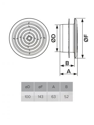 Диффузор вентиляционный пластик, установочный диаметр 100 мм, с фланцем d143 мм, ERA, 10DK