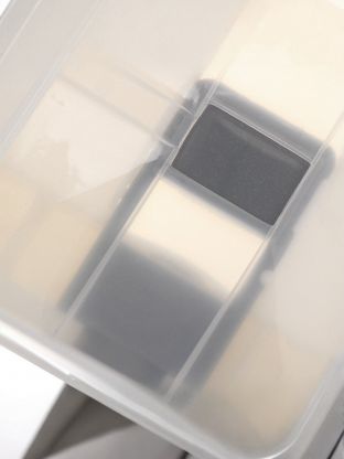 Контейнер рассчитан на 10 литров, выполнен из прочного пластика, не впитывающего запахи и легко моется.